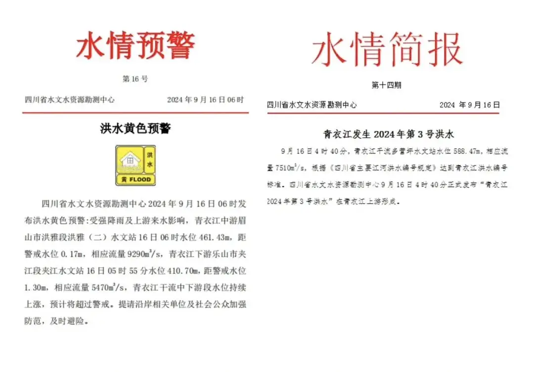 加强防范,紧急避险!青衣江发生2024年第3号洪水