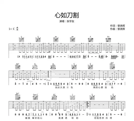 心如刀割吉他谱_张学友_c调原版弹唱谱_图片谱
