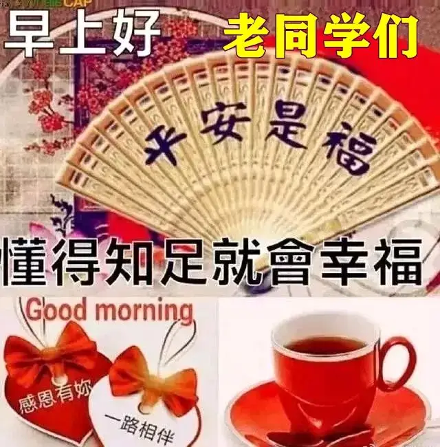 问候老同学早上好的带字图片同学相逢是缘一起迎接美好的一天