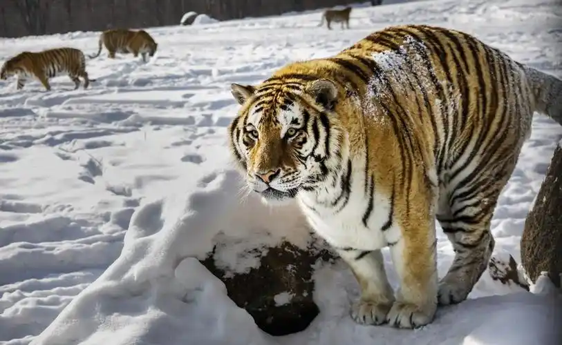 东北虎走,石头 壁纸