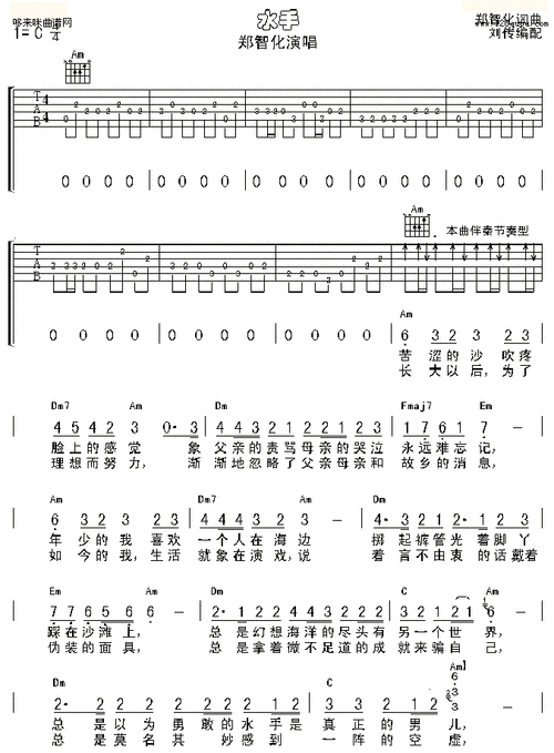 水手吉他谱郑智化c调吉他图片谱3张