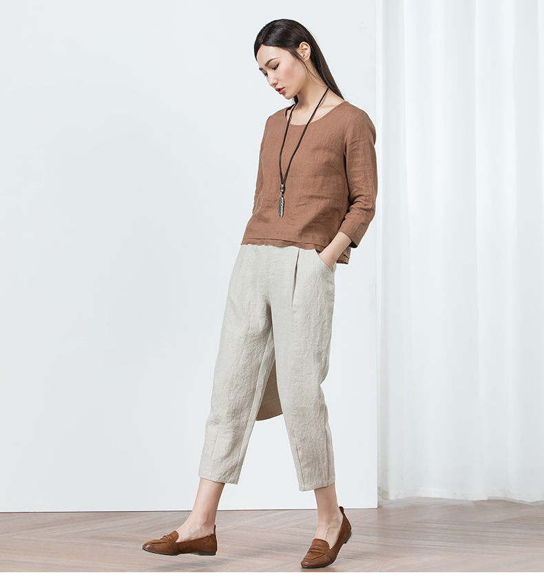 文艺复古亚麻裤子九分裤直筒裤休闲裤棉阔腿