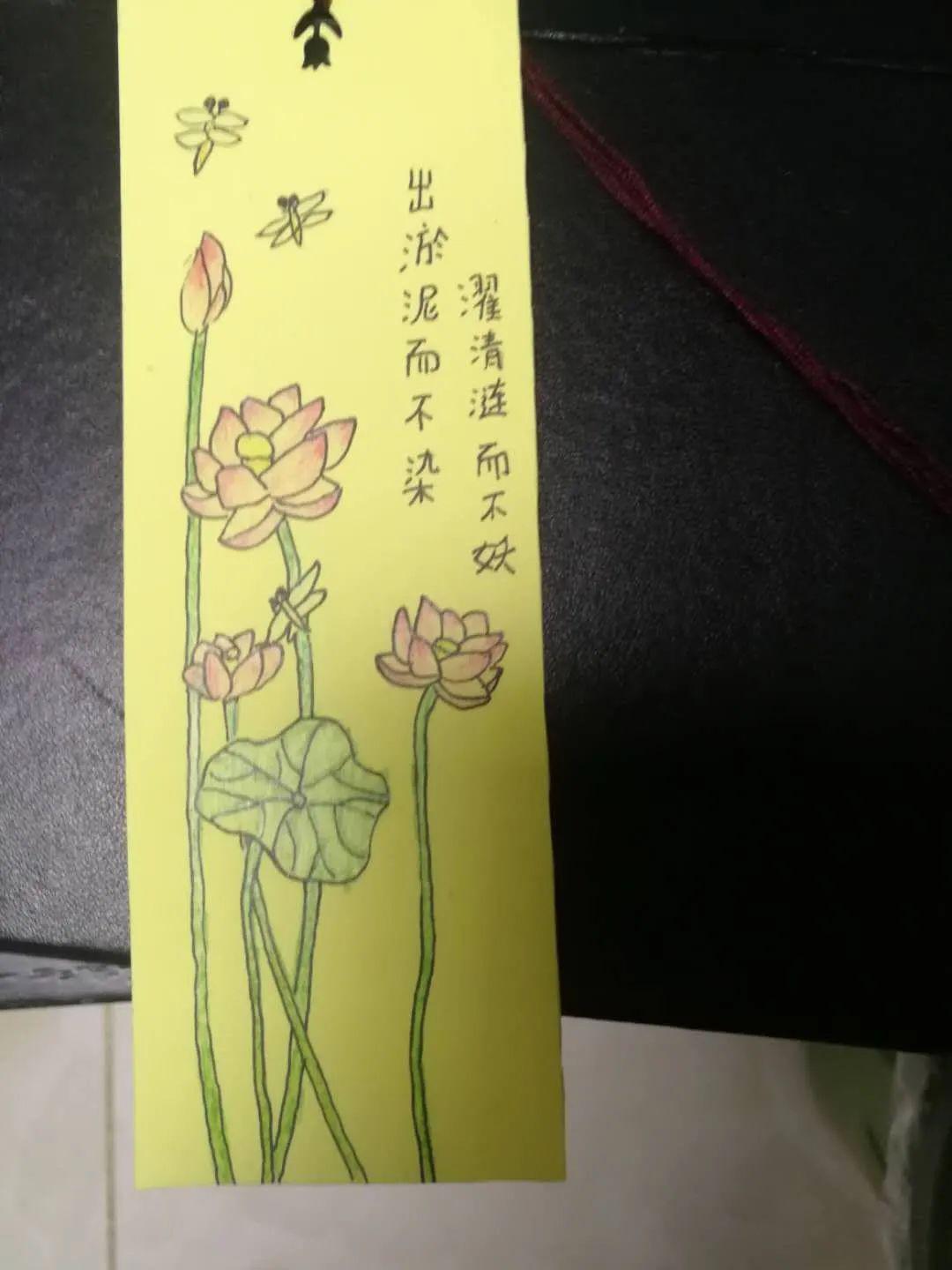 孩子们将他们对古诗的喜爱之情通过书签分享给大家,他们制作的书签里