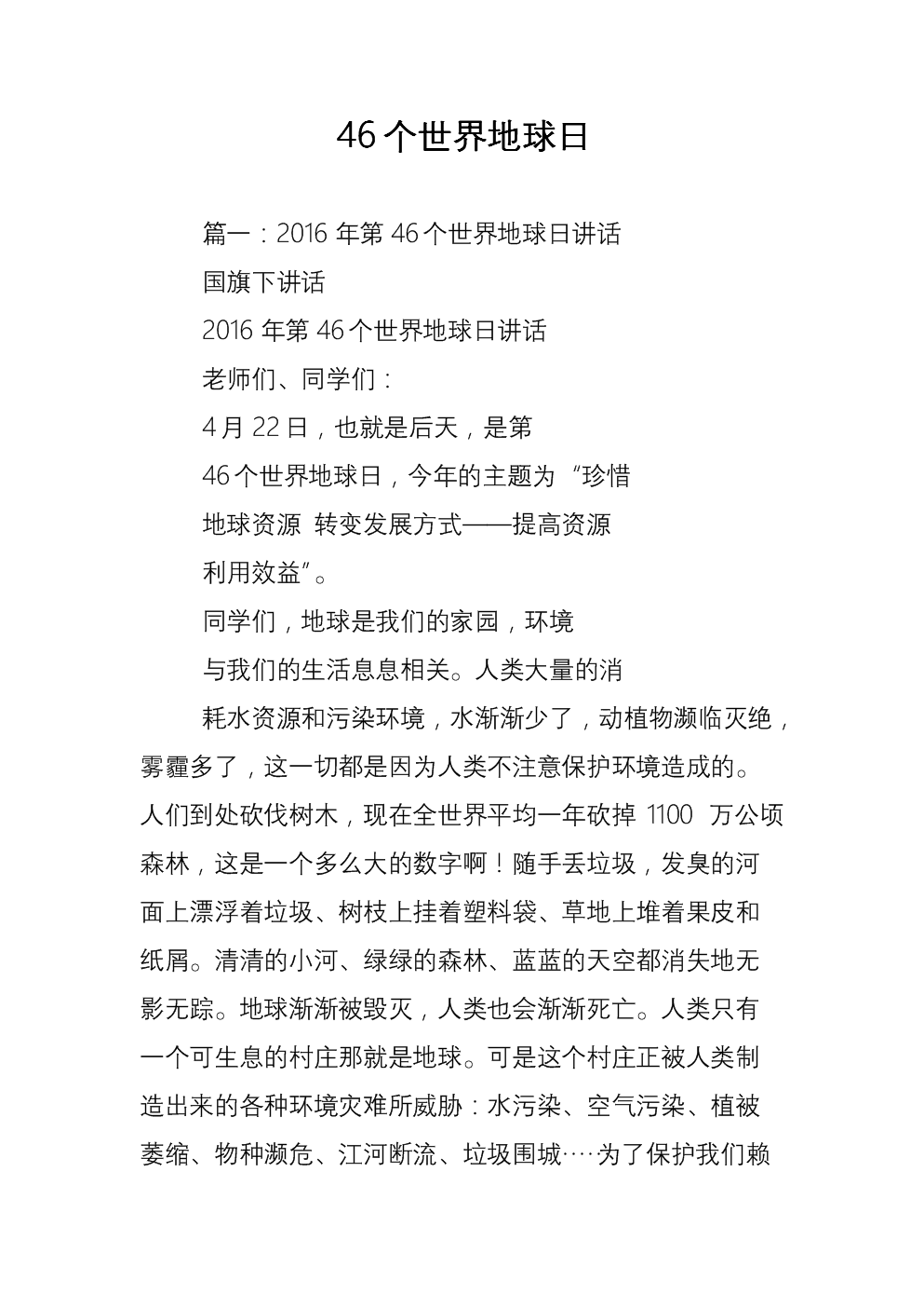 46个世界地球日.doc