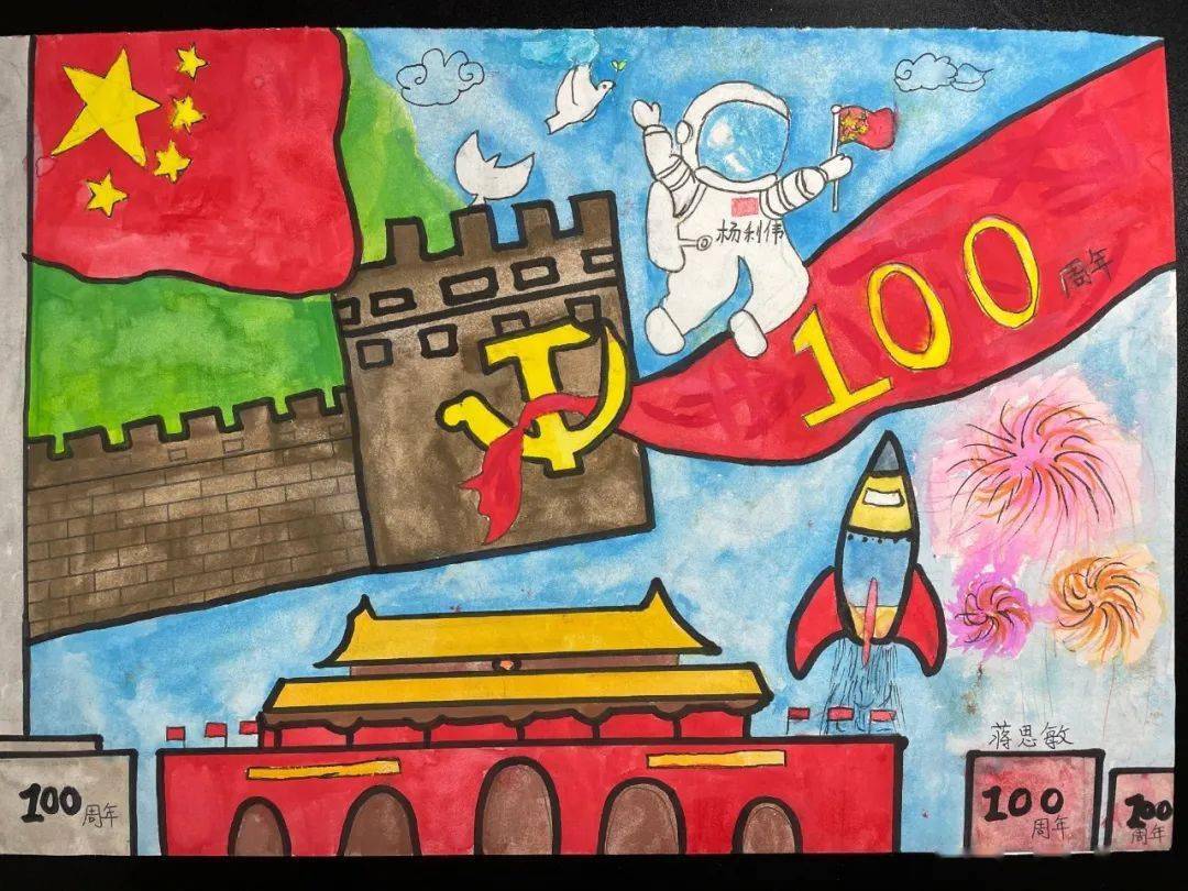 党旗飘飘我心飞扬建党绘画作品大全5068儿童网