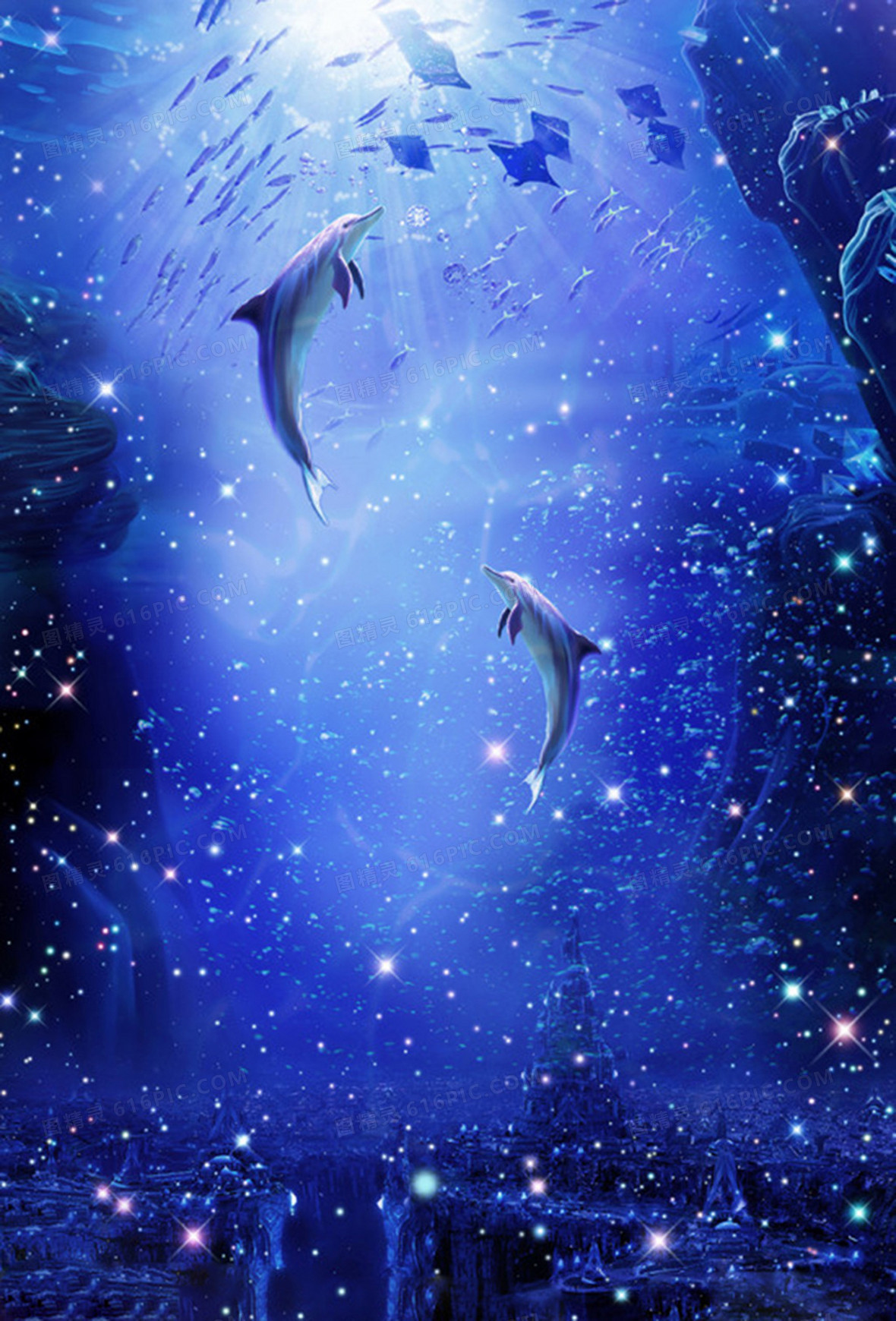 海底世界蓝色大海时尚唯美背景墙图片
