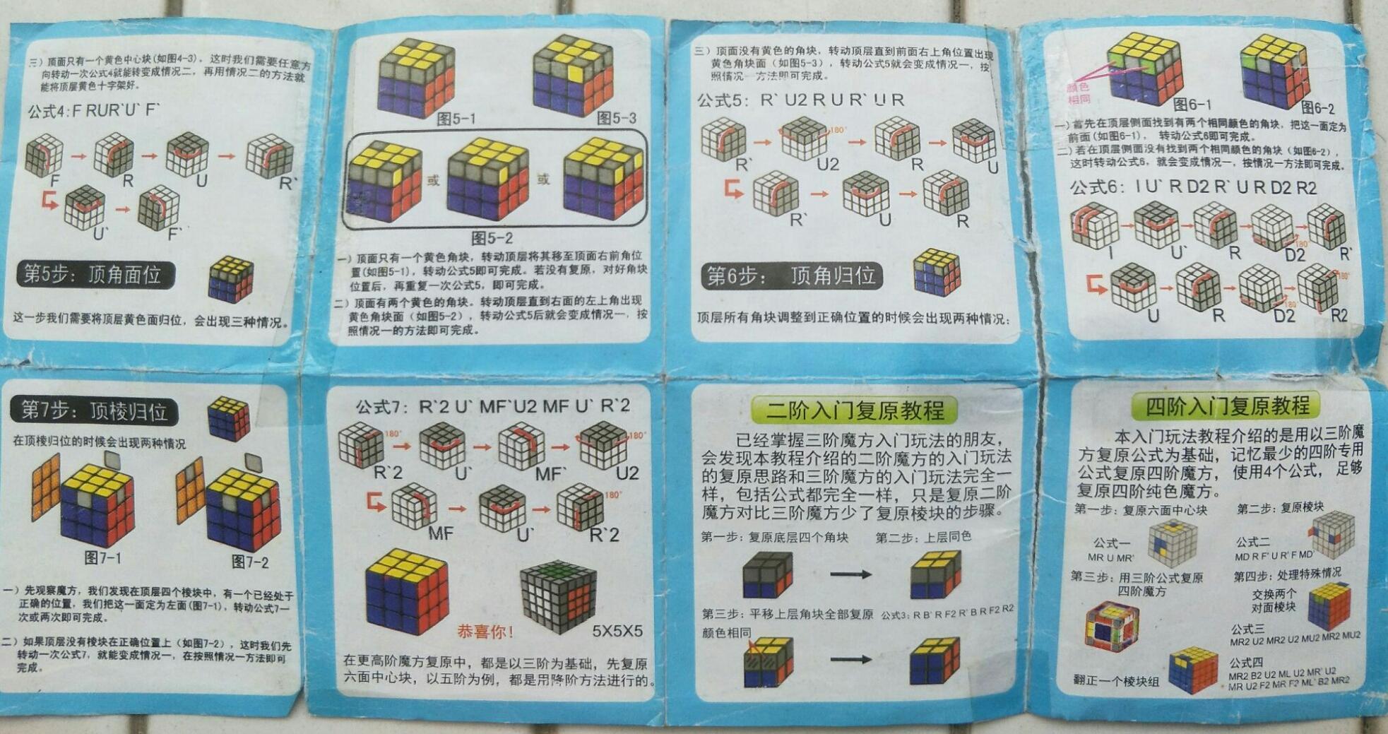 求圣手魔方四阶入门教程图纸的照片 类似于下面我的那个三阶魔方图纸