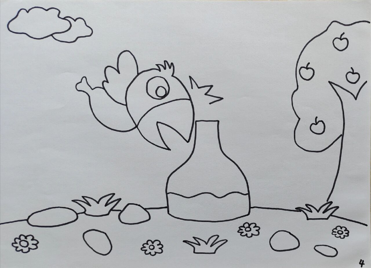 乌鸦喝水4格简笔画