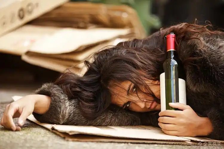 醉酒_女人_拿着_酒瓶_躺着_公路_高清图片_全景视觉