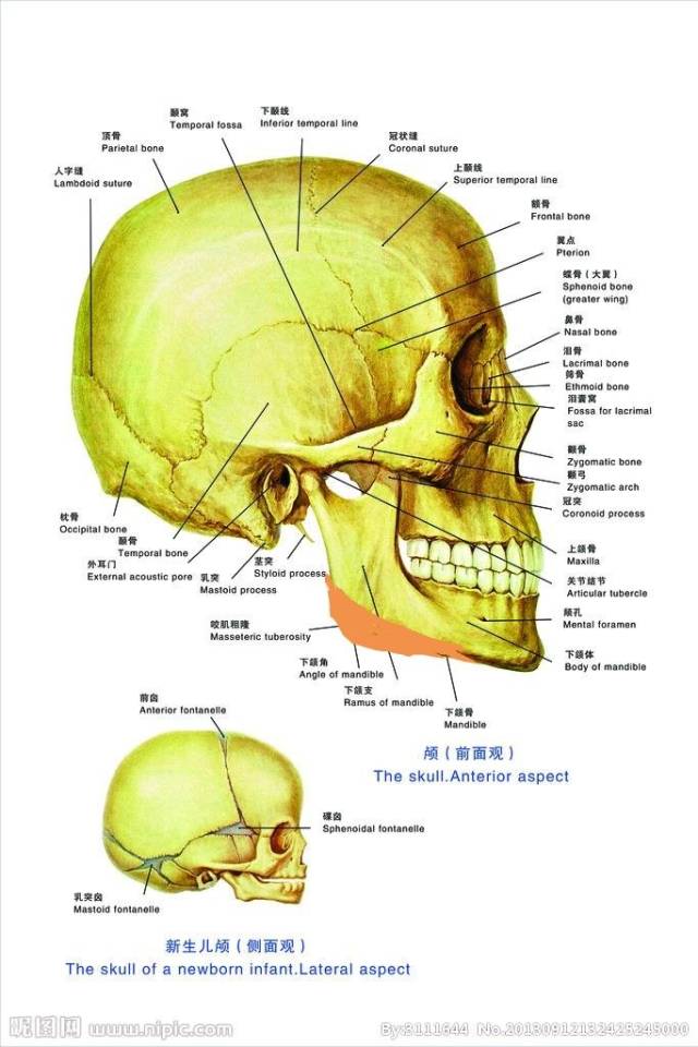 p>下颌骨分为体部及升支部,两侧体部在正中联合.