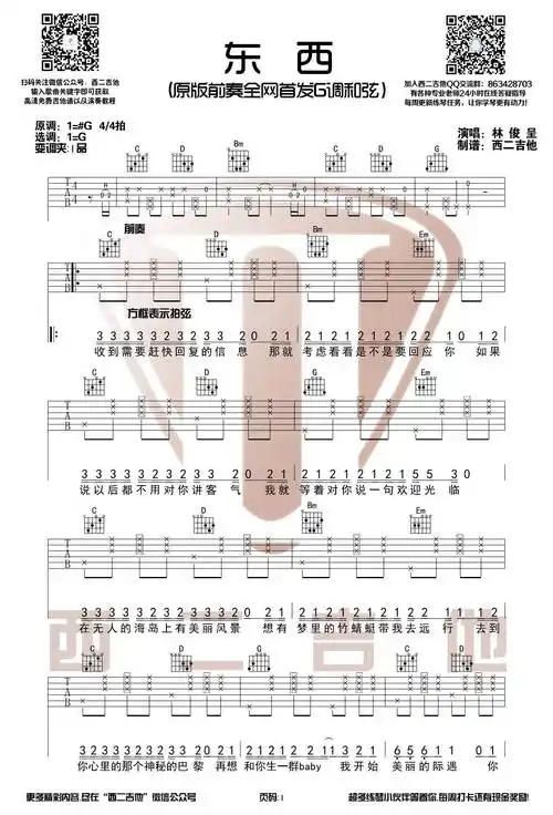 东西吉他谱 g调六线谱_西二吉他编配_林俊呈1