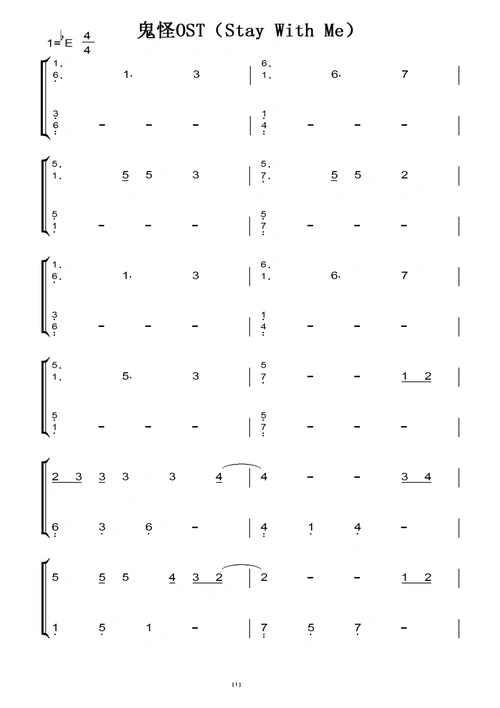 【鬼怪】原版《stay with me》钢琴谱 简谱_琴谱_韩剧_novotel