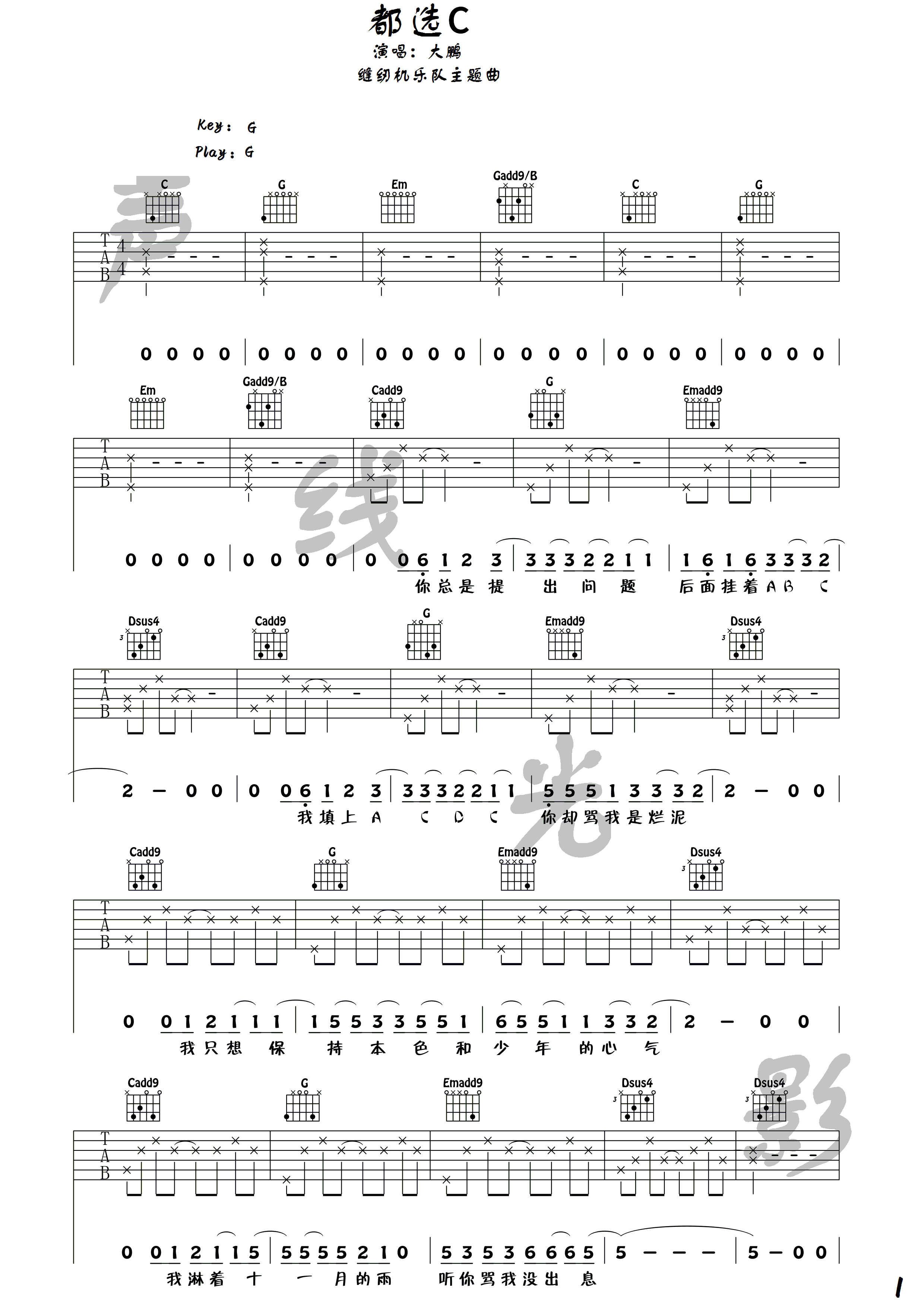 大鹏《都选c》吉他谱_a调高清弹唱谱_吉他六线谱.jpg