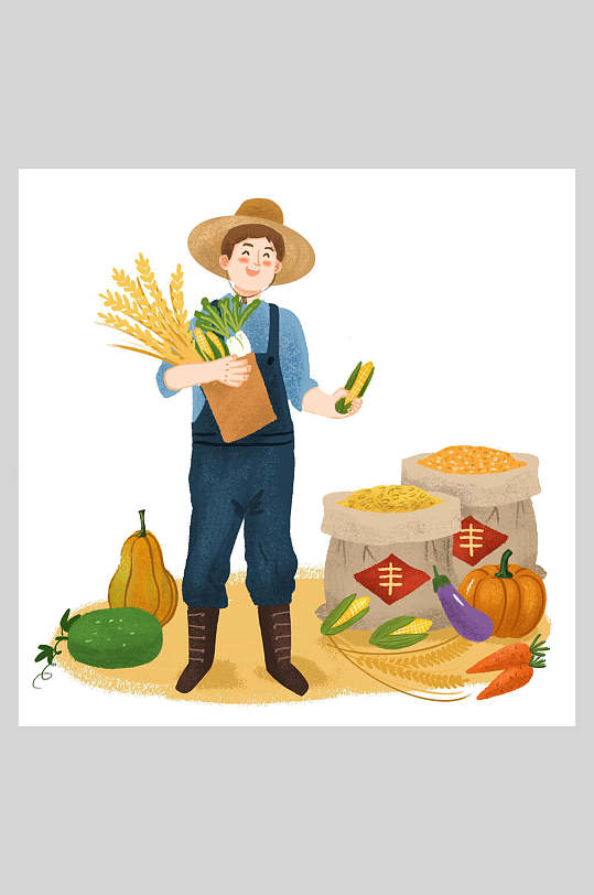 秋天手绘农民丰收插画元素