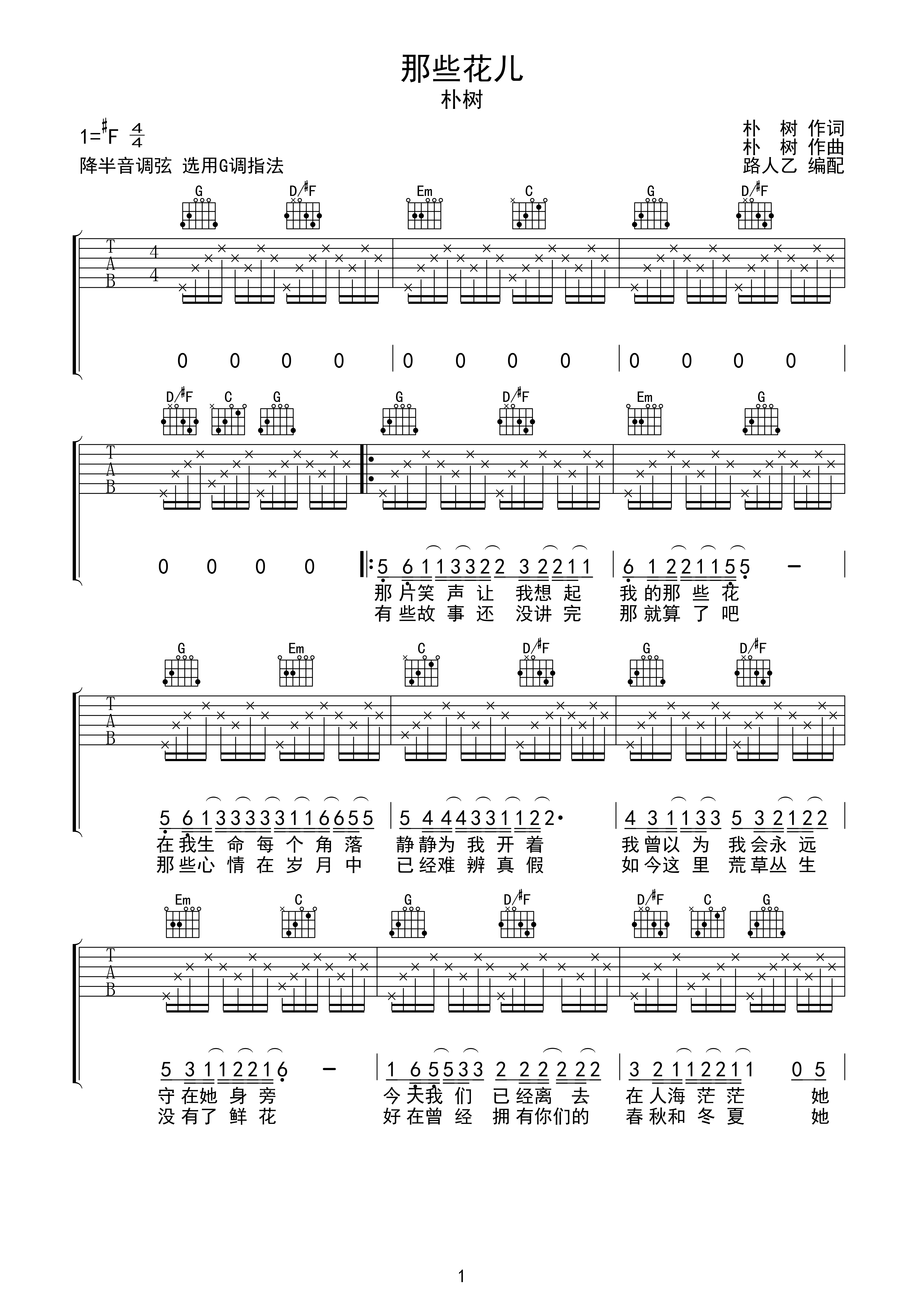 那些花儿g调六线pdf谱吉他谱-虫虫吉他谱免费下载
