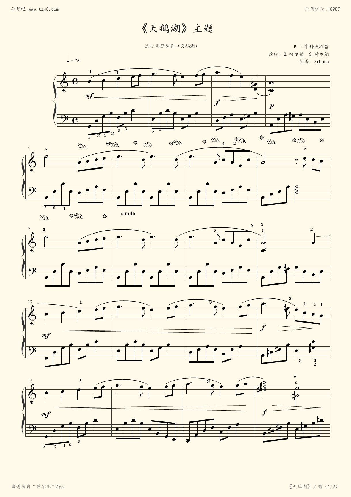 天鹅湖钢琴谱_柴可夫斯基tchaikovsky
