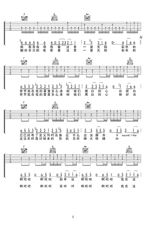 姚六一《雾里》c调原版吉他谱mp3免费下载