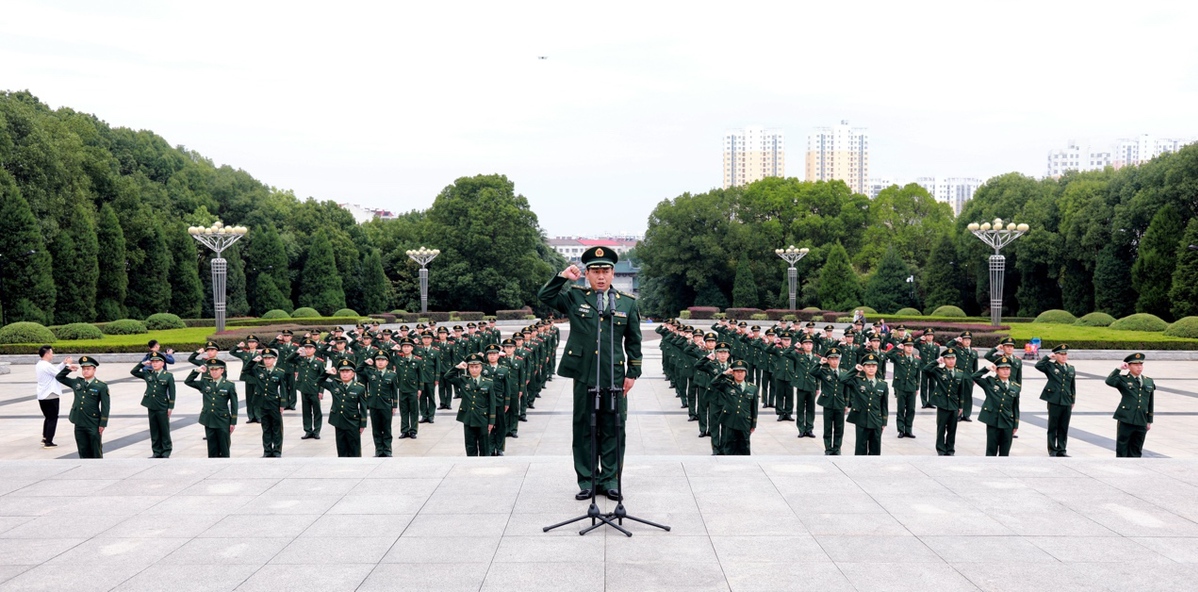 暑期执勤前,支队全体官兵进行宣誓动员.国子婧