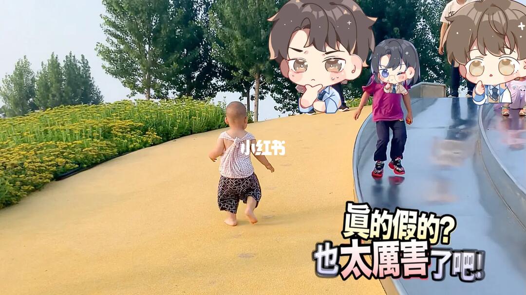 这个坡对于大人来说稍微有一点点吃力 但他自己走上去了,快到上方的