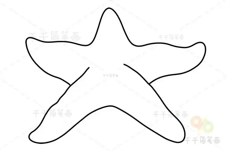然后用线条勾勒出海星的脊线首先先用五角星画出海星的外轮廓