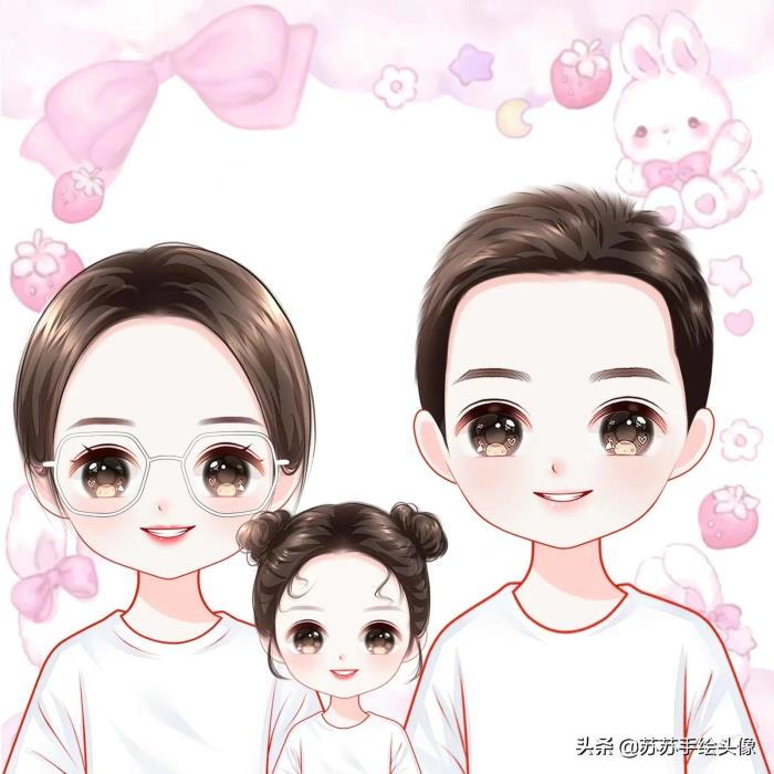 头像,圆圆的大眼睛,萌萌哒表情,三口人在一起其乐融融,幸福又美满