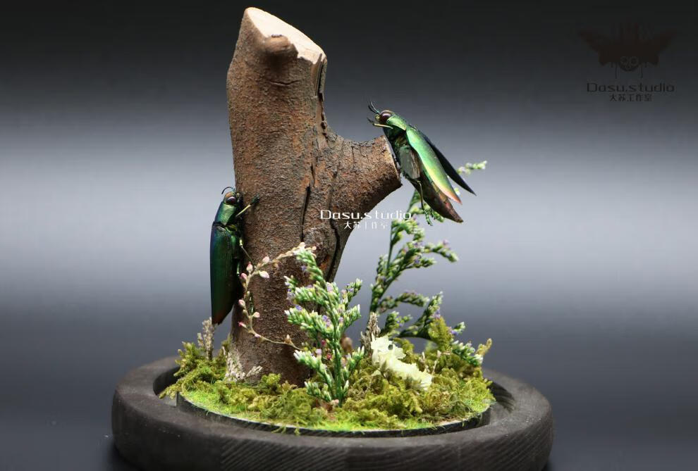 热销微景观玻璃罩_森林精灵小型真实昆虫甲虫标本生态微景观玻璃罩
