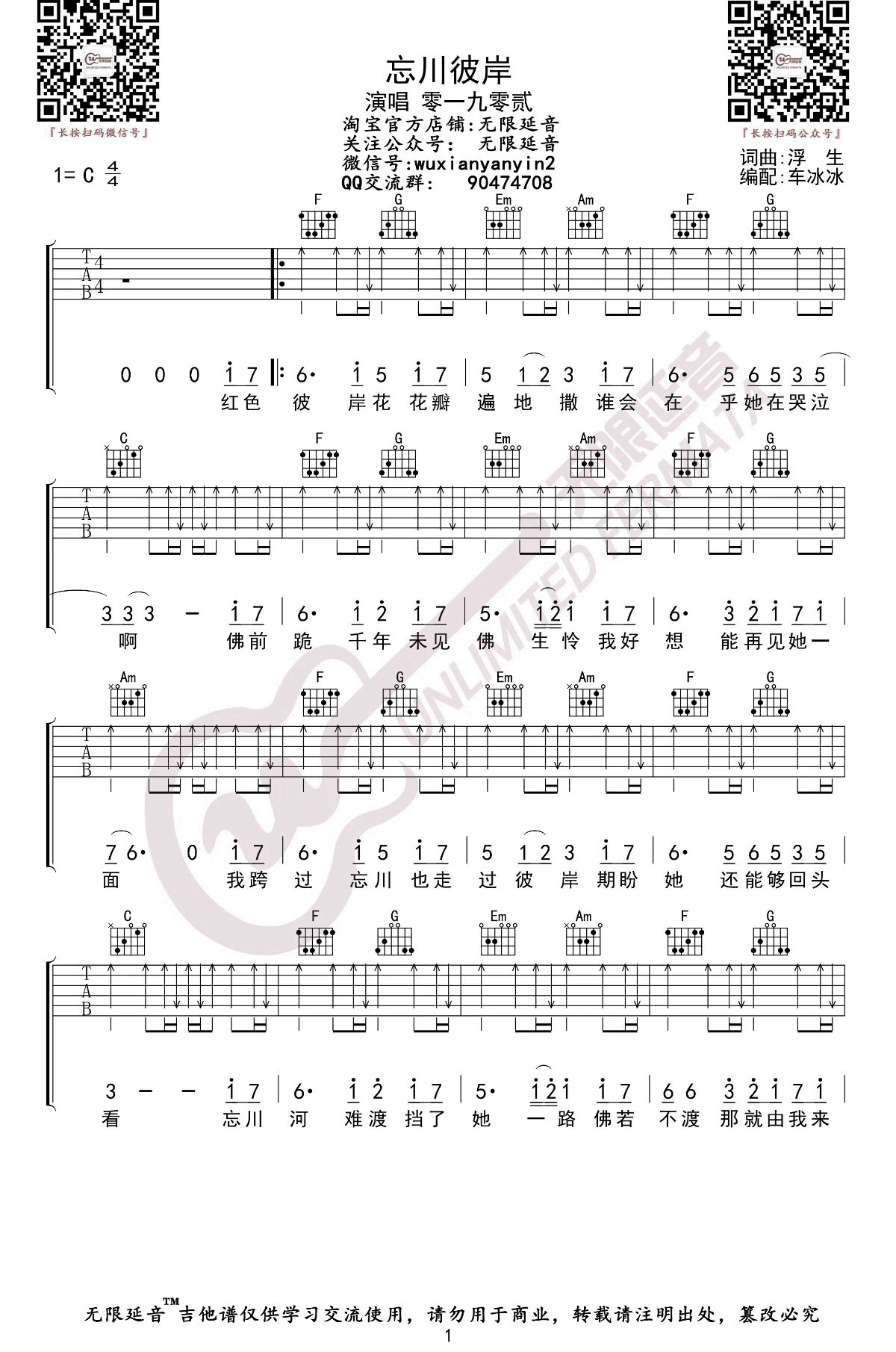 忘川彼岸吉他谱-零一九零贰-吉他帮-1