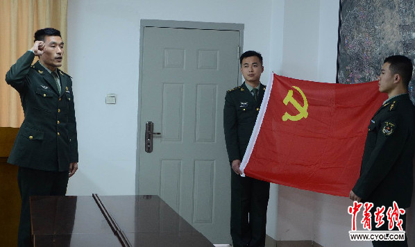2017年1月13日,面对鲜红的党旗,王晓冬举起右手,进行拥护改革宣誓.
