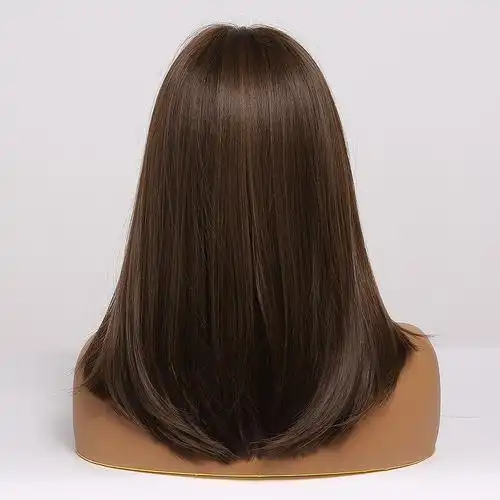 假发女士wigs八字刘海棕色中长长直发发尾卷其它假发