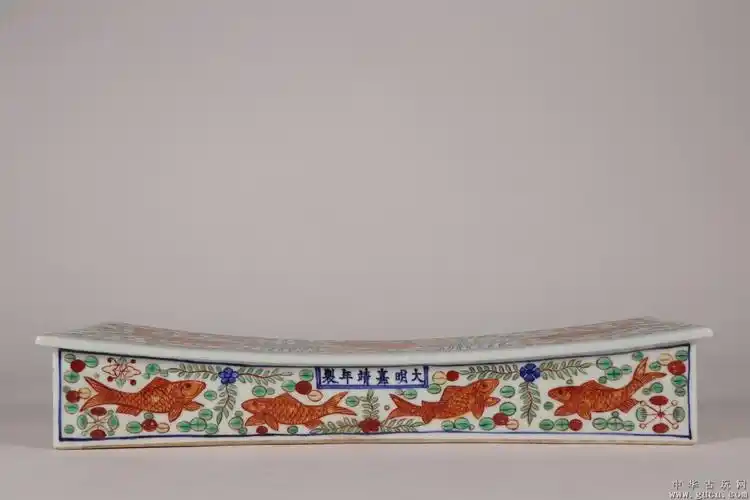 明代,"大明嘉靖年制"五彩鱼藻纹瓷枕