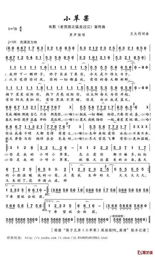 《小苹果》(筷子兄弟演唱)_歌谱简谱_歌词简介_曲谱资料