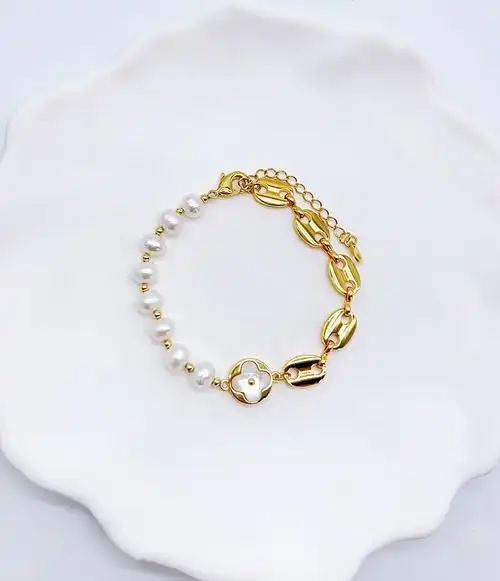 天然小珍珠手链女可吊坠福牌温柔气质简约14k注金手链