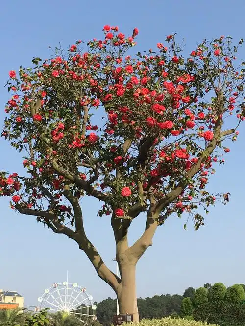 山茶花,在树中的氧山茶花