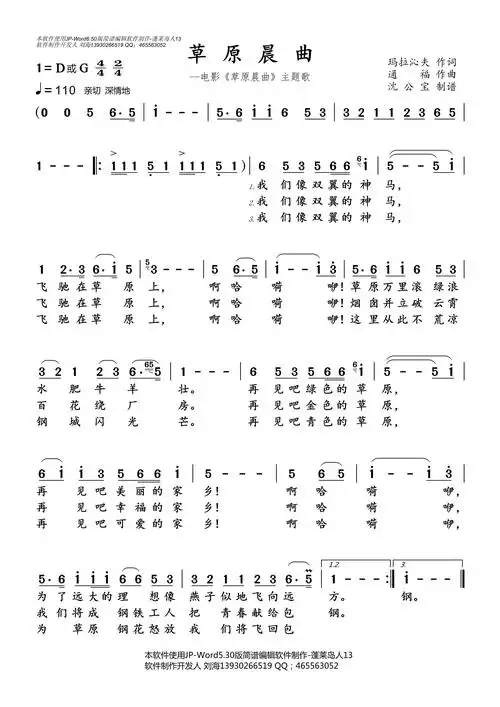 蓬莱岛人记谱相关歌谱:[其他曲谱]草原晨曲[简谱]草原晨曲[简谱]