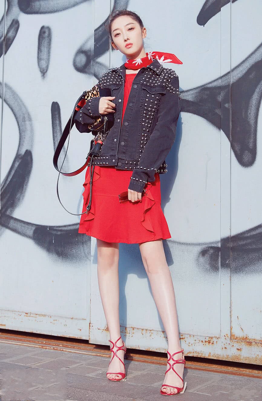 蒋梦婕红色短裙搭配一字带高跟鞋,大长腿白嫩细腻美出天际_漂亮_图案