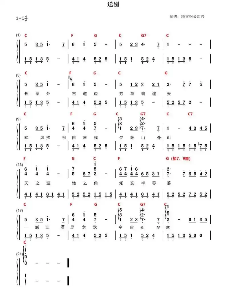 《送别》钢琴简谱 长亭外,古道边,芳草碧连天送别 钢琴即兴伴奏 钢琴