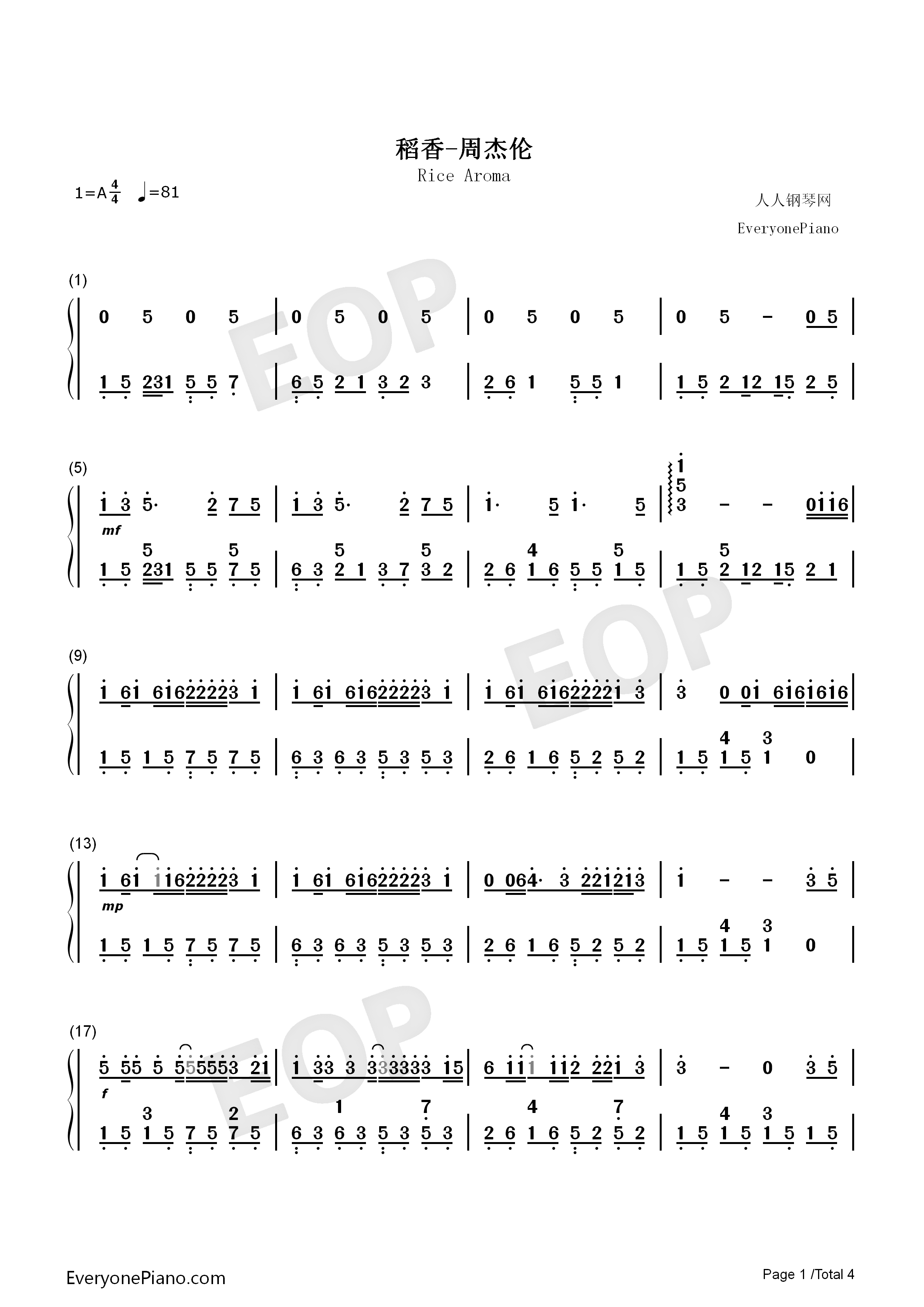 稻香-c调简单版双手简谱预览1-钢琴谱文件(五线谱,双手简谱,数字谱