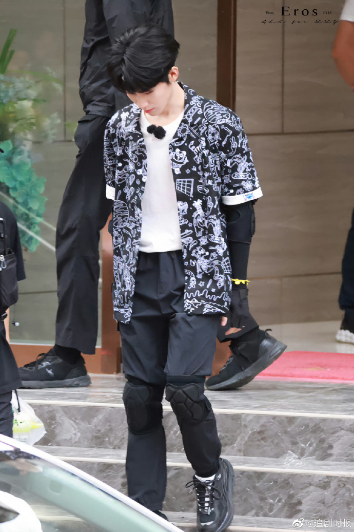张真源卡通涂鸦衬衫发带造型