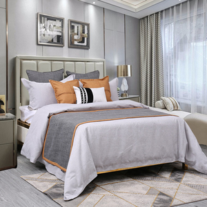 现代简约样板房间床上用品全套组合软装床品咖啡棕色灰色布艺搭配