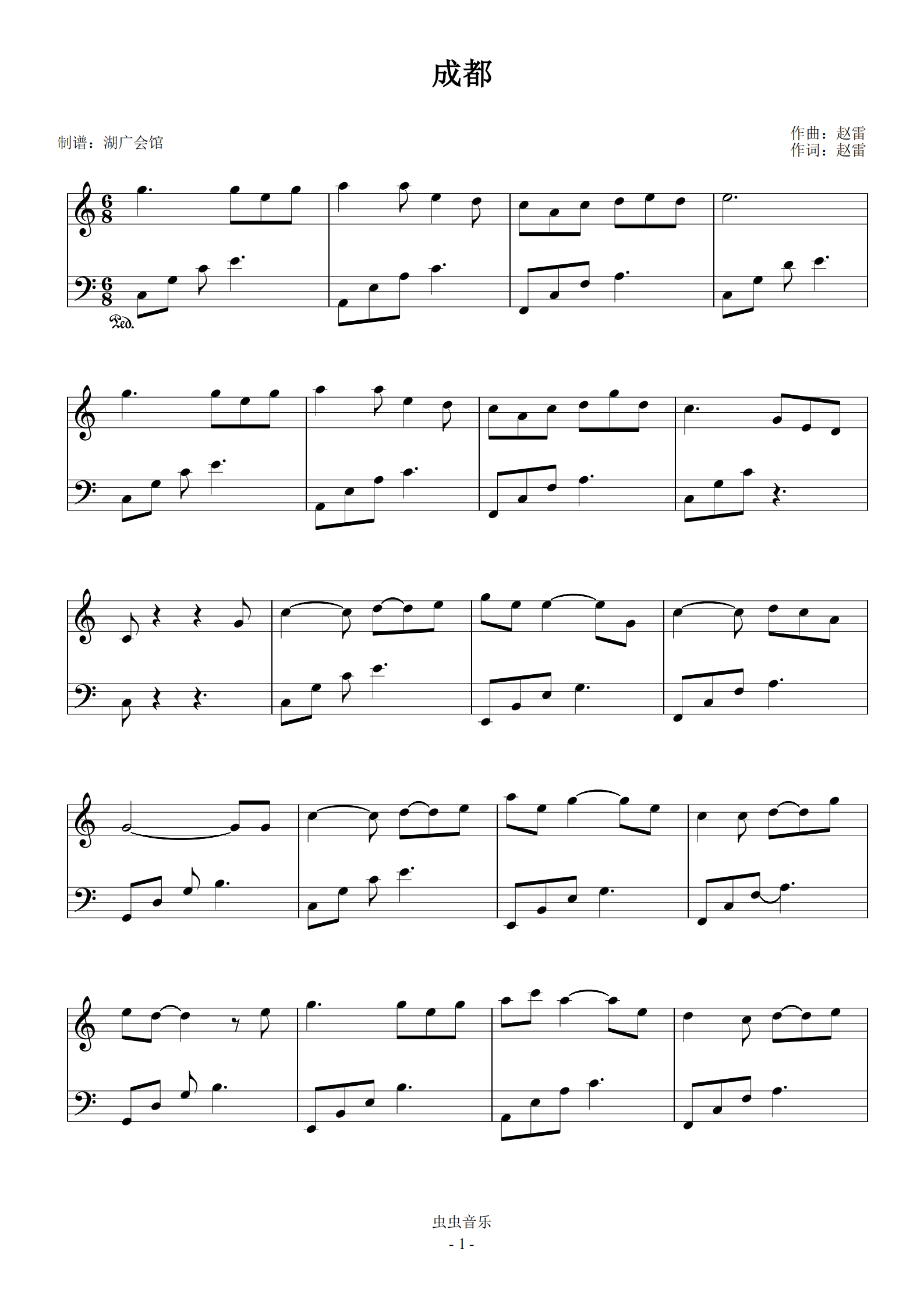 成都- 赵雷【原调初级】钢琴谱-见谱如面-虫虫钢琴
