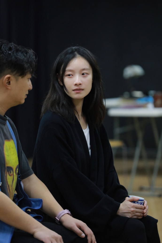倪妮素颜都沁人心脾,一身黑色衣服简单庄重,不同表情竟然有不同美感