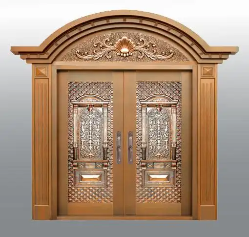 高端定制纯铜大门不锈钢镀铜双四开防盗豪华进户门别墅对开真铜门农家