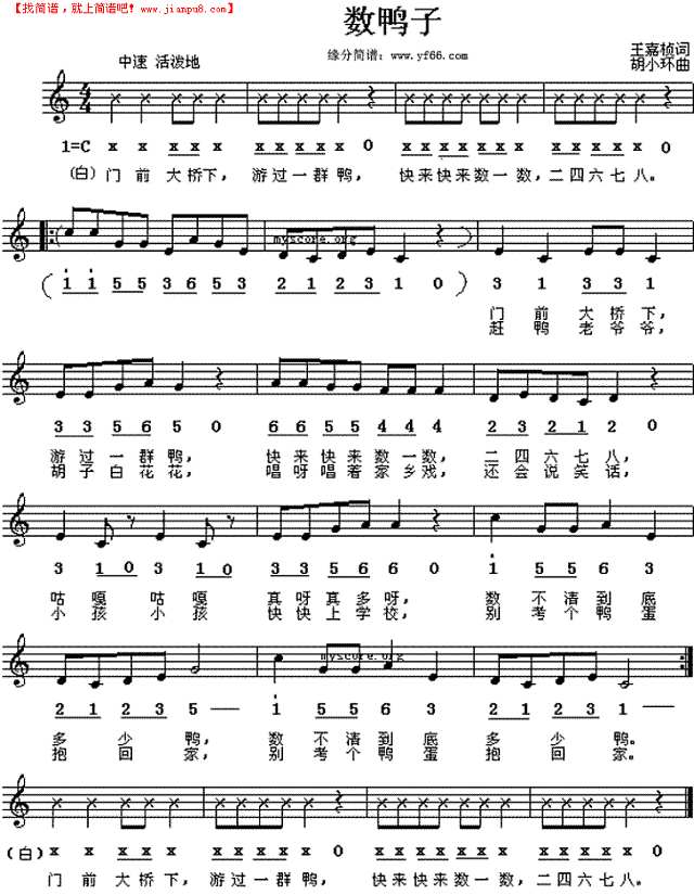 【数鸭子简谱】数鸭子(儿童歌)简谱
