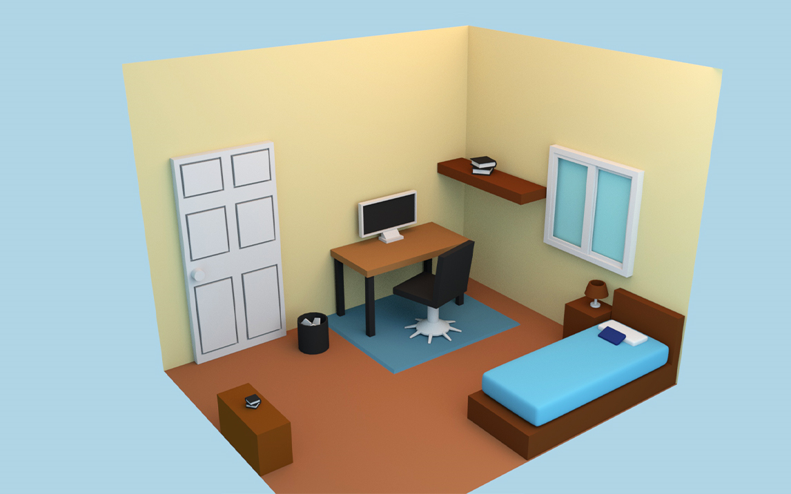 【maya室内场景建模】适合新手熟练maya基础操作的简单室内卧室模型