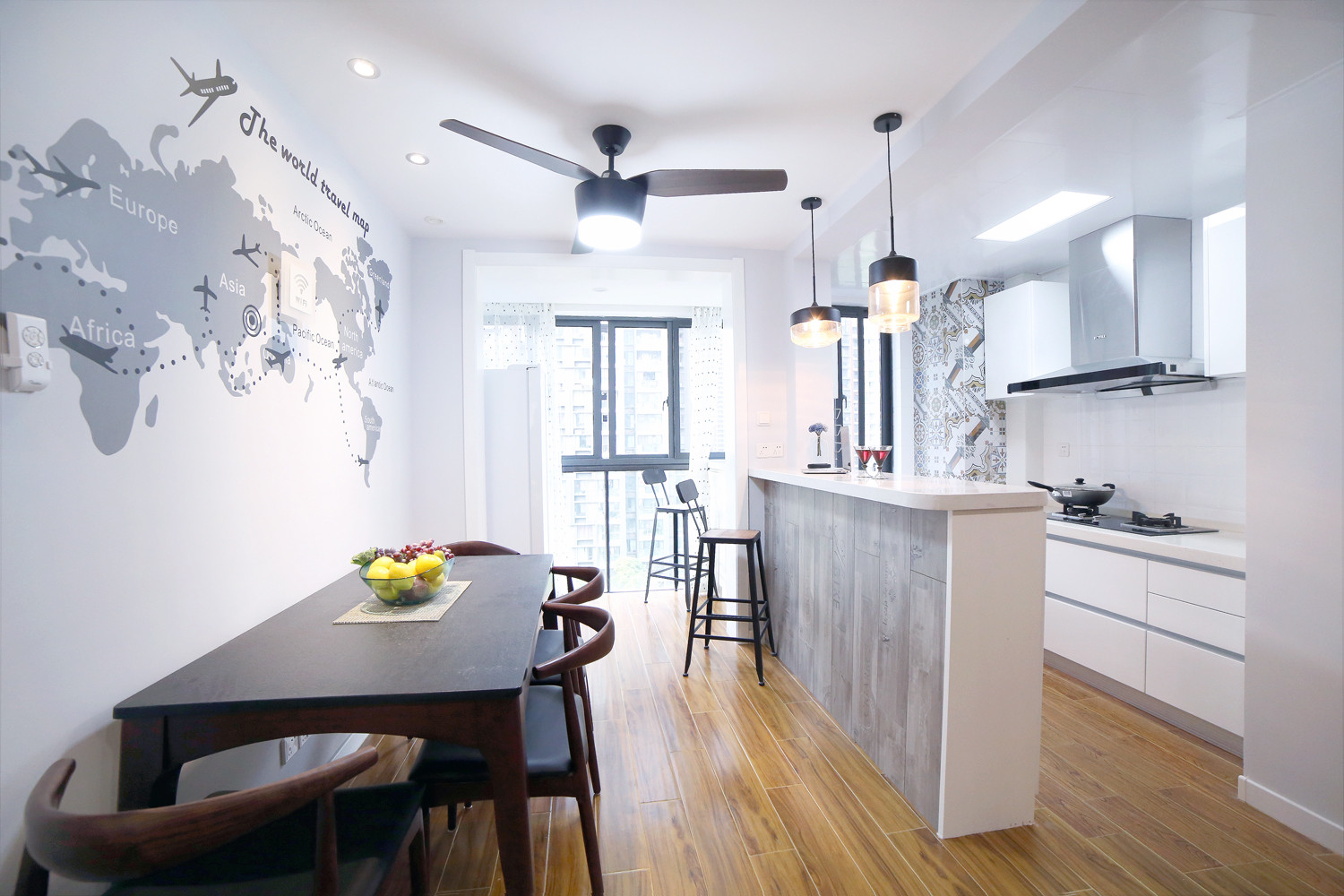 87平现代风格家庭餐厅餐桌装修设计图2019