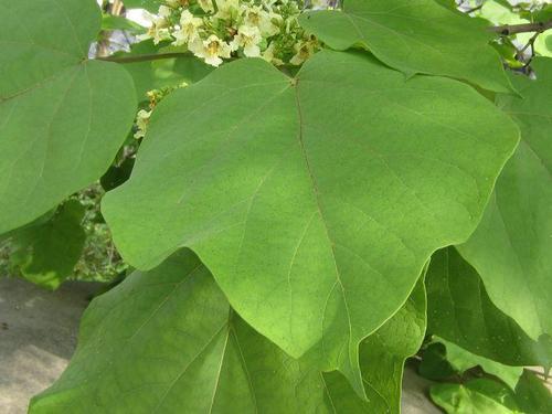 油桐有卵圆形的硕大的近全缘的叶片,有5 -7条掌状脉条,还有和叶片差不