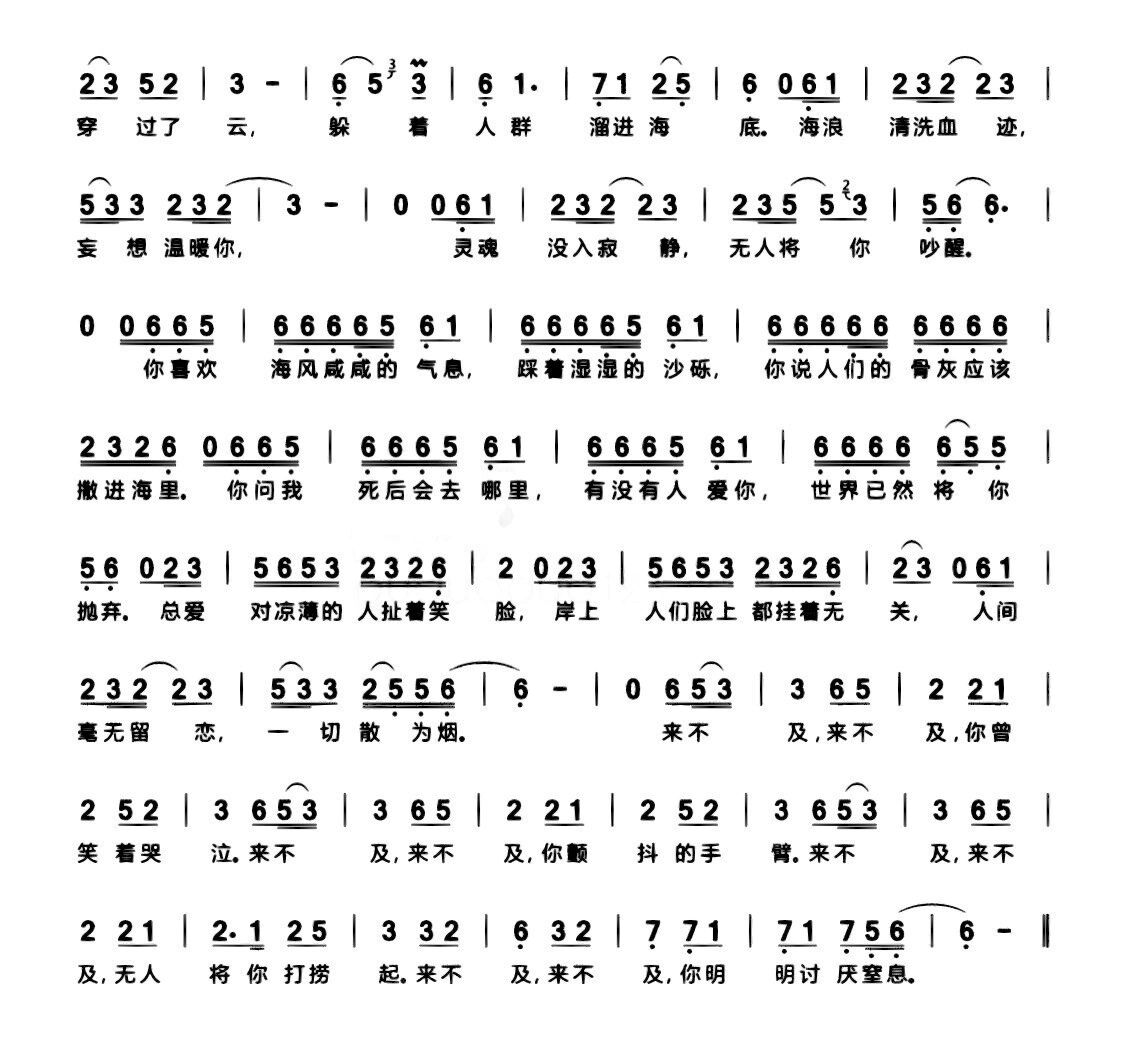 海底(完整版)简谱歌词