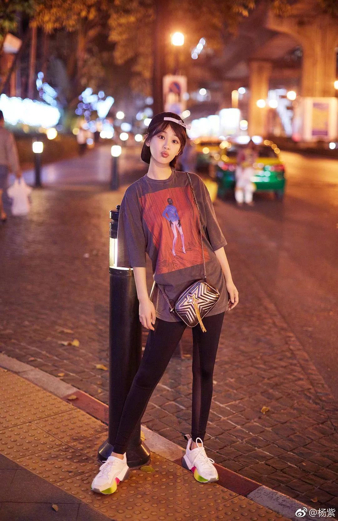 杨紫终于在机场翻车了,穿黑色t恤配紧身裤太显胖,终于信有120斤