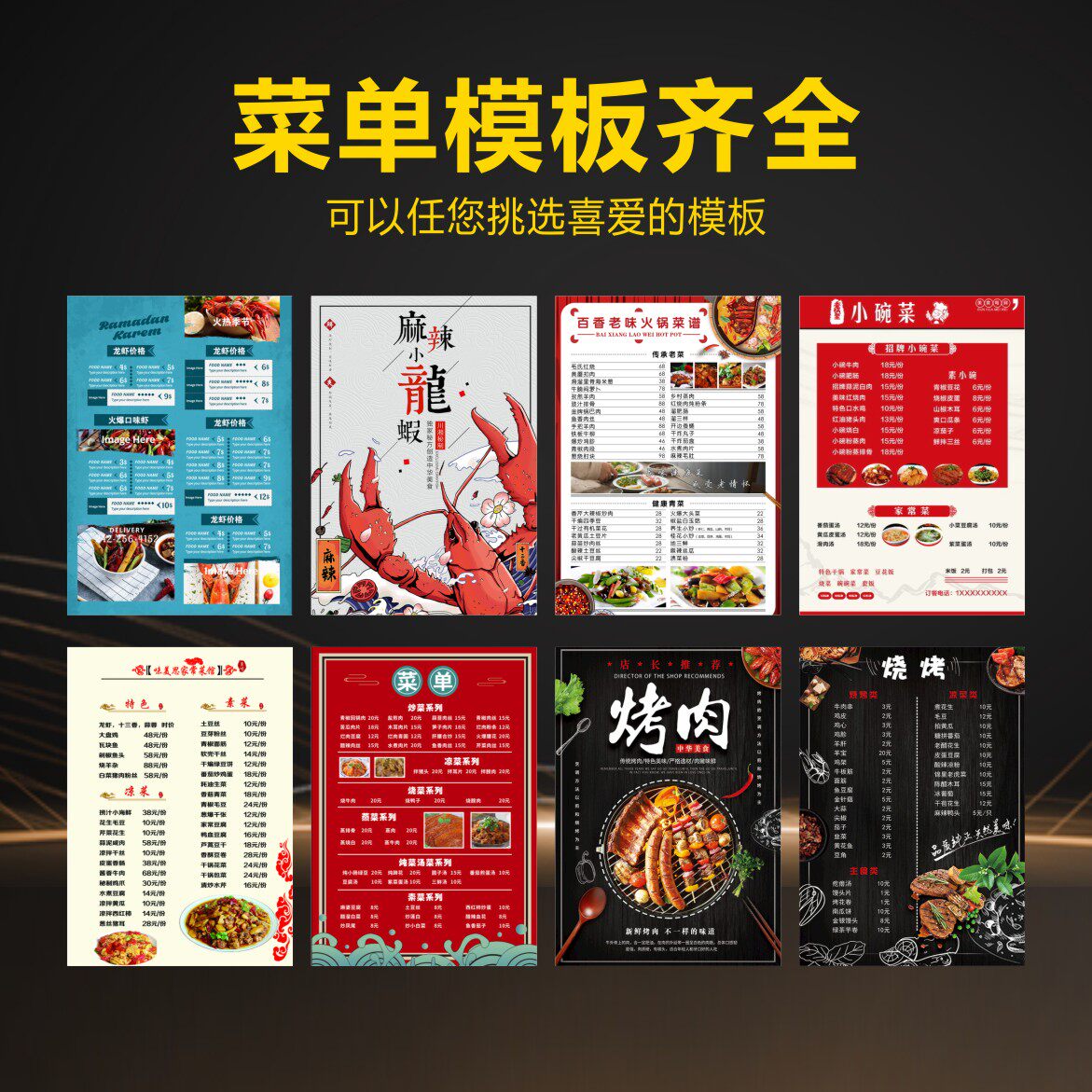 塑封点菜菜单价目表设计排版制作防水过塑饭店定制菜谱