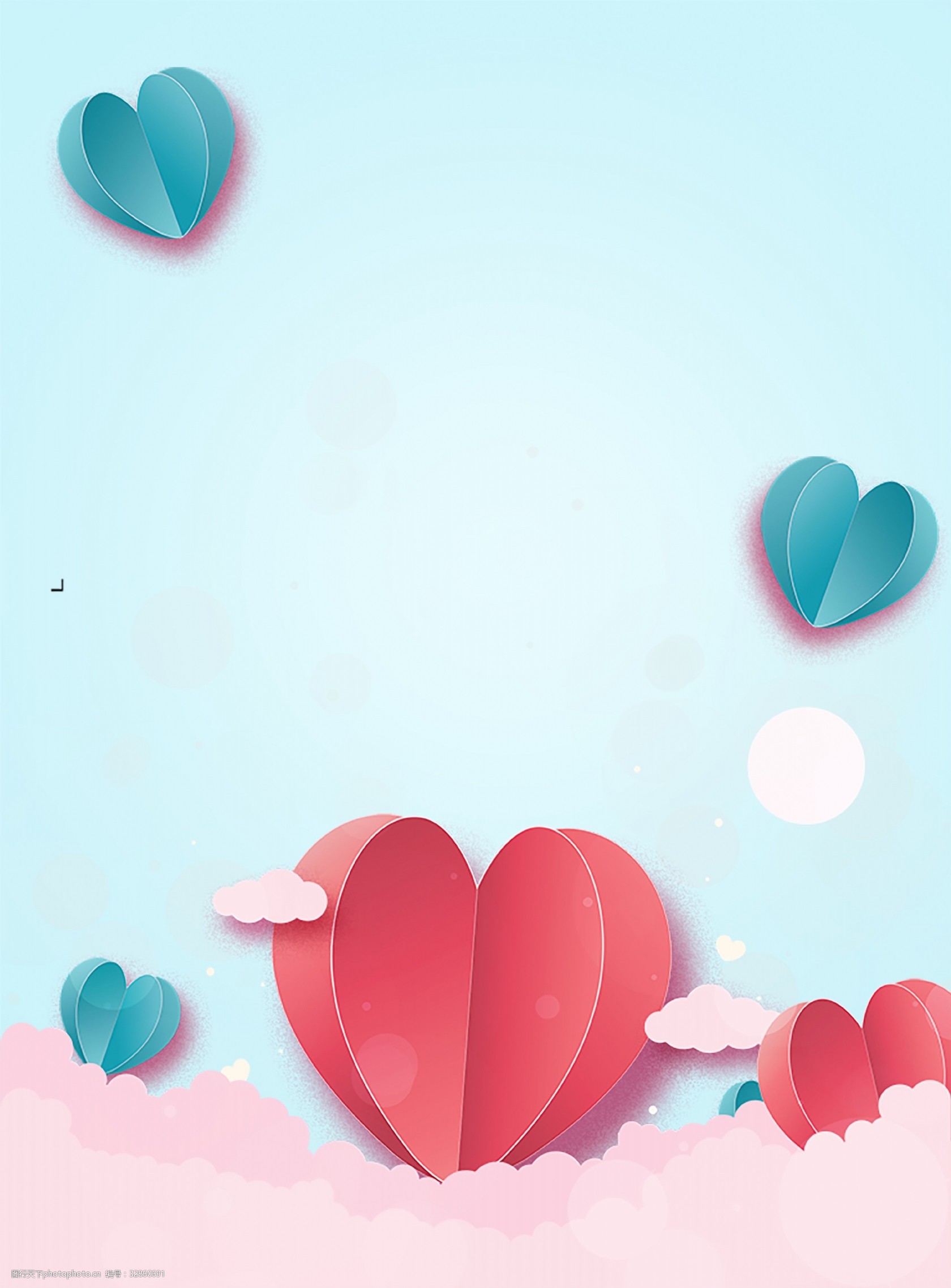 情人节女王节女神节妇女节清新剪纸风爱心蓝色广告背景